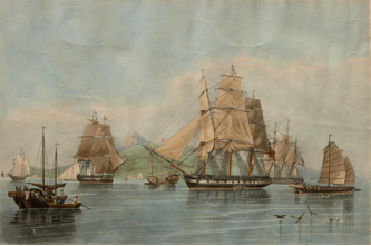 On a balmy Sunday evening in March 1838, a colorful conclave of English, Parsee, American, and Hong merchants crowded the resplendent grand hall of the New English factory in Canton in a sort of town meeting to hear Chief Superintendent and Plenipotentiary of Britain’s China trade, Charles Eliot. Eliot was there to announce Britain’s response to the arrival of Imperial Commissioner Lin Zexu, who had arrived days earlier with a commission to eliminate the opium trade, his sweeping proclamation demanding they deliver “every particle of opium” to him for destruction. It was addressed to “the Barbarians of every nation.” Recognizing the sprinkling of Americans in the hall, Eliot expressed his delight for their tacit cooperation, and assured them, too, of the protection of the British government. Proclaiming what everyone already knew, that two American warships, the imposing USS John Adams and the Columbia, were expected imminently, he hoped that he could count on their assistance. “Yes, you may,” someone shouted back. All in all, it was “a very pretty speech,” American merchant Robert Bennet Forbes observed.[1]