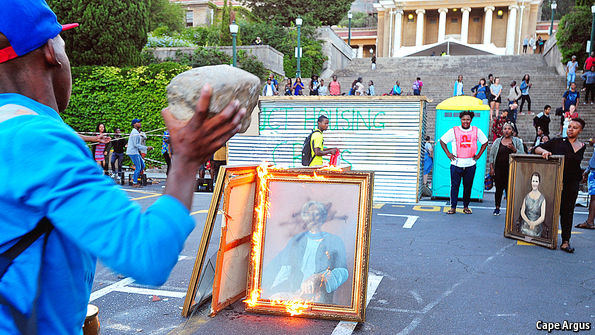 First they came for the statues. Last year students in Cape Town sparked national protests by calling on the University of Cape Town (UCT) to remove a statue of Cecil Rhodes, a Victorian imperialist who, like most Englishmen of his time, held racist views. The statue was removed but students were still angry. Many marched on South Africa’s parliament to complain about high college fees, among other things. That prompted a cash-strapped government not to raise fees after all.