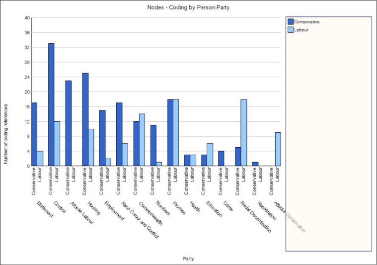 Despite the importance of these addresses, so far the only systematic study, by Nuffield Studies, only used a 25% random sample, which did not accurately portray immigration’s saliency in troubled areas such as the West Midlands. As a result, the study found that only 8% of Conservative candidates and 14% of Labour candidates talked about immigration.[3]