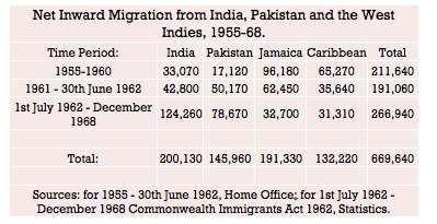 The passing of the act, however, caused some unpredicted changes to the patters of immigration into Britain. While it generally limited immigration from the Commonwealth, it also led to a dramatic increase in the numbers of dependants entering from 1960 onwards, whose entry was not covered by the Act. The paradoxical conclusion is that the proponents of control created the very situation that they most feared: in eighteen months the net inflow was almost as great as that of the previous six years. This was because the wives and children of those immigrants already in Britain were anxious to join them before further controls could be introduced.[1]