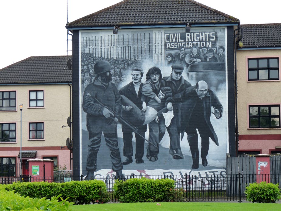 A mural in Bogside in Derry/Londonderry near the site of the events of Bloody Sunday. murielle29/flickr, CC BY-SA