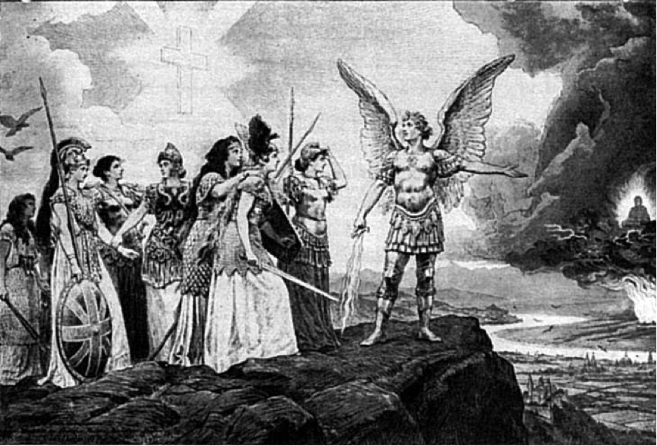 The Boxer Rebellion saw the Yellow Peril enter the popular 20th-century vernacular. The term itself is often attributed to Kaiser Wilhelm II. Wilhelm’s vision was inspired by Herman Knackfuss’s 1895 lithograph, ‘Peoples of Europe, Guard Your Most Sacred Possessions’ (pictured above), which depicted the European nations as warrior goddesses preparing to do battle with a dragon mounted Buddha symbolising China. This image of the Yellow Peril helped cultivate an imaginary enemy to justify European imperial policies that would continue into the 20th century [7].