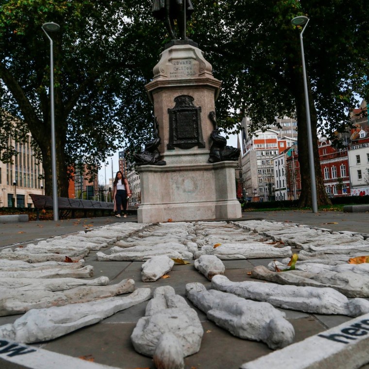 Some people proposed ways in which the statue might be kept, its meaning remade, unable any longer to glorify slavery. Street artist Banksy suggested that it would be better to re-instate the statue, but in the moment of its toppling, alongside newly cast bronze protestors. He playfully presented himself as the voice of reason and compromise, simultaneously catering for ‘both those who miss the Colston statue and those who don’t’. Others sought to recontextualise the statue, seeking ways to relieve it of its power to glorify imperial violence whilst giving voice to those who suffered. Some plans advocated surrounding Colston with monuments to the 84,000 enslaved people he was estimated to have traded, or replacing him with a different statue every day for the next 233 years to recall each slave he was responsible for shipping. The most common response was the statue’s ‘ideological quarantine’ in a Bristol Museum, although critics questioned whether such use of museums served to depoliticise political actions, treating them as places where historical problems could be made to disappear.
