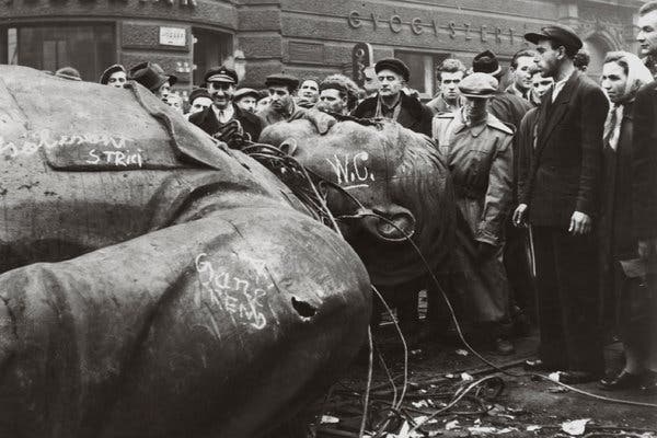 Statue of King George III being pulled down at Bowling Green, Lower Manhattan.The widely celebrated act of taking down Stalin’s statue at the beginning of the Hungarian revolution in 1956.