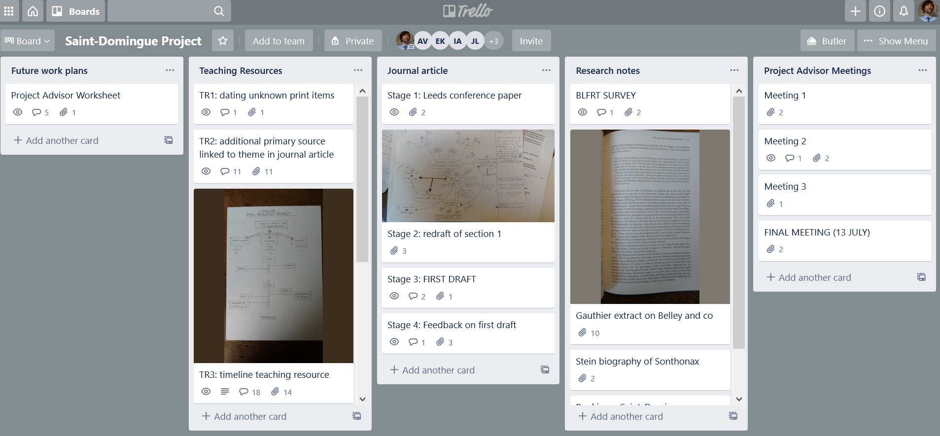Jessica Lloyd writes: When I first signed up for the role of project advisor I was not entirely sure what to expect, but it has proved to be thoroughly rewarding. The project has been far more collaborative than I expected, involving numerous (coronavirus-necessitated) video sessions and lots of group work prompted by our own interests and ideas. Alex asked several things of us, beginning with engagement with his own academic research – namely, an article-in-progress examining the intersection of print cultures between the French colony of Saint-Domingue and the metropole. Our initial meetings gave us an introduction to his research, as well as an opportunity to voice our own thoughts on his work and what the role of a Project Advisor should be. Fast-forwarding a few months, we had the chance to read the initial draft of Alex’s article, and provide feedback from a student perspective – something that I cannot believe does not happen more often, given that students form the majority of readers for many academic articles. Alex outlined his writing process for us in regular meetings, through email updates, and by posting material to an online hub. This opened my eyes to the scale of research that goes into journal articles.