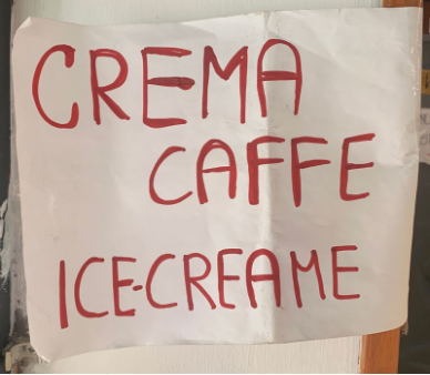 What does this divergent text tell us about the potential audience? What do the spelling mistakes tell us about the owner or the creator? (cf. Spolsky Handwritten bottom-up sign with divergent text 2008, 31). in Italian and English (Calle de le Chiovere)