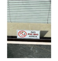 Once again, the juxtaposition was striking. On the one hand, the funeral home conveys dignity, restraint, and locality. On the other, the “No Picnic Area” sign seems almost absurd in this context—who would consider picnicking in front of a funeral service?