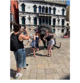 During our fieldwork, we observed how these lion sculptures—created by artist Davide Rivalta—serve as both public art and interactive installations. At first glance, they appear to enhance the public realm and invite community engagement. However, there is a striking irony here. The lion of Venice, long associated with Saint Mark the Evangelist, has deep historical and political roots as a symbol of Venetian identity and pride. And yet, here in Campo Santa Maria Formosa, these lions seem to have taken on a different role: tourist photo opportunities. Rather than sparking reflective engagement with art or history, they often function as aesthetic backdrops for quick snapshots. What was intended as a site for thoughtful interaction has, in practice, become part of the city’s expanding tourist infrastructure—a symbolic detour on the way to more “authentic” landmarks.