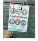 Finally, it is interesting to note that the city of Venice seems to take the imbalance between touristic and residential spots into account as well. In Figures 9 & 10, one taken next to the bookshop and the other taken near a take-off spot for gondola tours on the Santa Maria Formosa campo, the city chose to include a sign with its slogan meant to raise awareness: “#EnjoyRESPECTVenezia”. The choice to use an English slogan and to highlight the “Respect” in the slogan clearly signifies that the city hoped to combat the increase in (disrespectful) tourists in Venice. By choosing to put these slogans near predominantly touristic spots such as the bookshop and the gondola services, they offer further evidence to support our division of Santa Maria Formosa into touristic, residential and mixed areas.