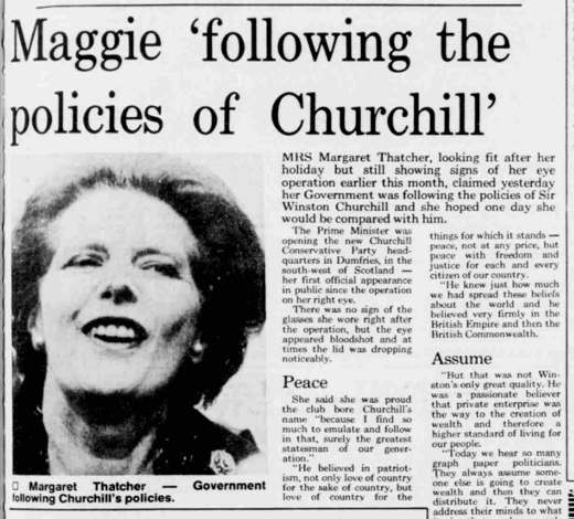 [9] “Maggie ‘following the policies of Churchill’,” Belfast News-Letter, 1 September 1983, 3.
