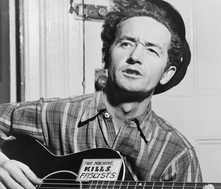 “Commie Folksinger Woody Guthrie Not Woke Enough for Mob,” jeered Breitbart’s John Nolte, delighted with this evidence of internecine strife among what he dubbed the “fascist woketards” of the American left. The Daily Wire’s Emily Zanotti soon joined the fray, penning a piece under the headline “This Land Is NOT Your Land: Woke Culture Now Demanding Woody Guthrie Be Canceled Over Folk Music Faux Pas.”