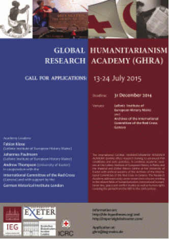 In July 2015, during my research, I got the chance to participate in the very first Global Humanitarian Research Academy. This academy played a very positive role for me, as it was an occasion to meet other researchers working on the history of humanitarian action. Our various talks and debates made me think about other practices and ways of studying the past of humanitarian organizations. We shared different perspectives, some close and some more distant from mine, however all of them very interesting and challenging. It also gave me the opportunity to posit my hypotheses and research results to more advanced scholars. They gave good advice that I then used during the writing process of my dissertation. Meeting others PhD students was useful in terms of networking, of course. Beyond that, the excellent atmosphere created during the academy allowed us to maintain amicable contacts, as well. Still today, I regularly exchange with my fellows. At the end, this experience was really rewarding. Continue reading “Why Historians Can Be Valuable Members of the Humanitarian Family”