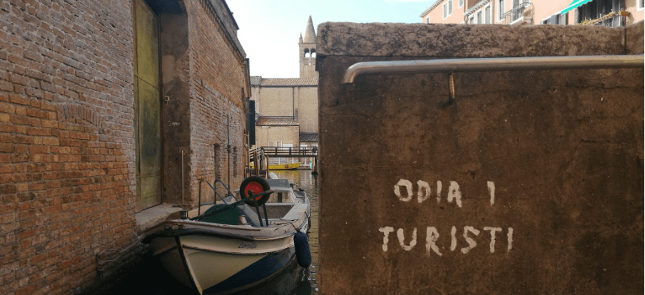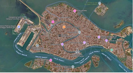 In Santa Marta, a quiet Venetian district, the city itself becomes a text: walls, streets, and public spaces speak through signs, graffiti, and infrastructures that reveal five interwoven themes: Anti-tourism, Transport & Mobility, Multilingualism & Symbolic Resistance, Government & Authority, and Prison as an Edge. From anti-tourism sentiments to the symbolic tensions of incarceration, our investigation examines how language, infrastructure, and public space interact to shape meaning and mobility. As shown in Figure 1, which provides a satellite view of Venice highlighting key landmarks and mobility nodes, our study is grounded in the spatial reality of the city. We begin by analysing local resistance to mass tourism, then move through the spatial logic of transport hubs like Piazzale Roma. We further consider multilingualism and graffiti as forms of symbolic resistance, explore the role of governance in shaping visibility and authority, and finally, interpret the Santa Maria Maggiore prison as both a physical and discursive edge.
